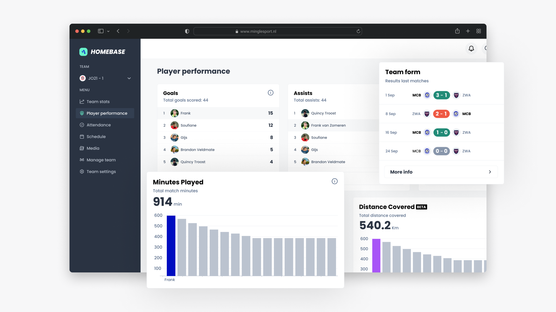 Using our desktop app Homebase, coaches have access to every player, match and training insights.